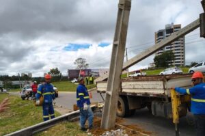 Após acidentes, Prefeitura substitui postes derrubados na Av. Luís Eduardo Magalhães