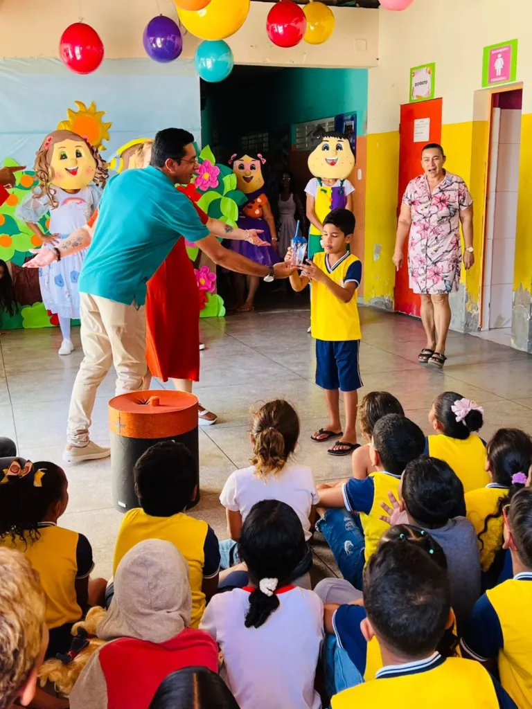 A programação envolveu diversas apresentações culturais e educativas, incluindo a participação do personagem Papa Pilha, que reforça a importância do descarte correto de pilhas e baterias. As crianças também apresentaram um jogral temático sobre questões ambientais, teve dança, música e até a presença simbólica da Ararinha-azul, que encantou e chamou a atenção dos alunos para a proteção da fauna local.