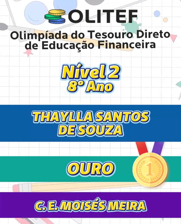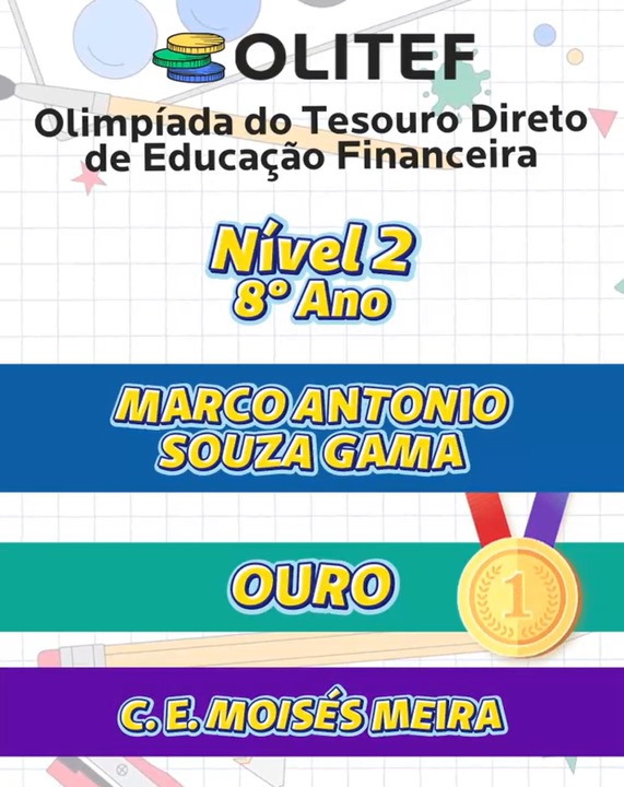 Olitef – uma iniciativa nacional gratuita que busca promover o conhecimento financeiro entre alunos do 6º ano do Ensino Fundamental até o 3º ano do Ensino Médio. Realizada em parceria entre o Tesouro Nacional e a B3, com apoio do MEC, a olimpíada incentiva a educação financeira desde cedo, preparando os estudantes para o futuro.