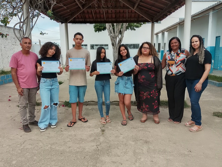 Diolino, Raiane, Marco, Heloá, Thaylla, Raíza, Margareth e Ruth Ferreira Prado (Coordenadora Pedagógica)