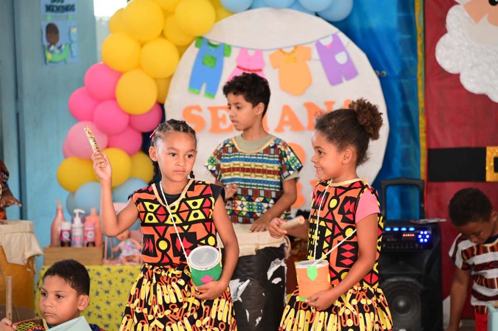 Nesta terça-feira (2), os alunos realizaram apresentações musicais e fizeram pinturas. Na ocasião, também participaram de contação de histórias com foco na equidade racial. “Essa equidade busca promover uma infância que celebre a diversidade, construa a identidade da criança e as prepara para um futuro mais justo”, explicou a diretora da instituição, Fabiana D’Esquiavel.