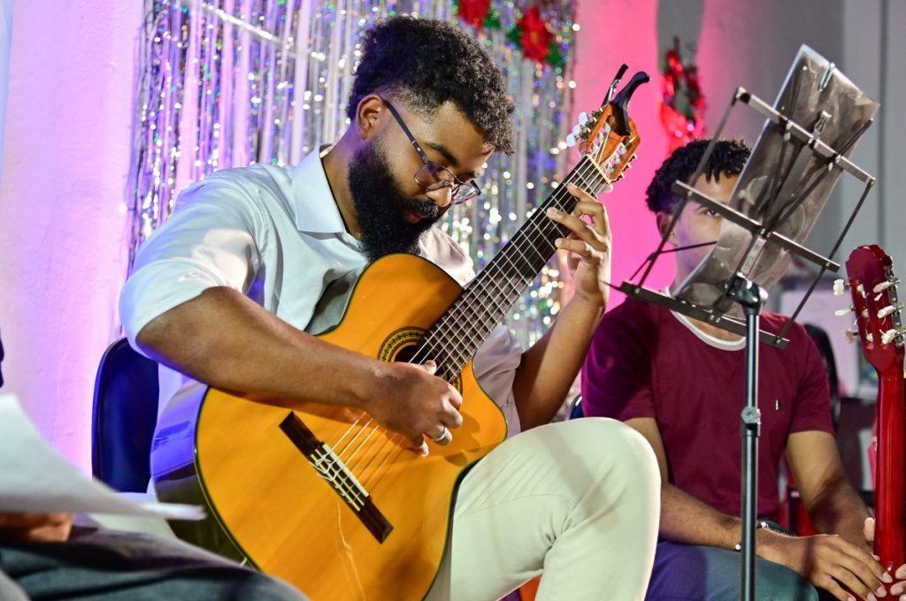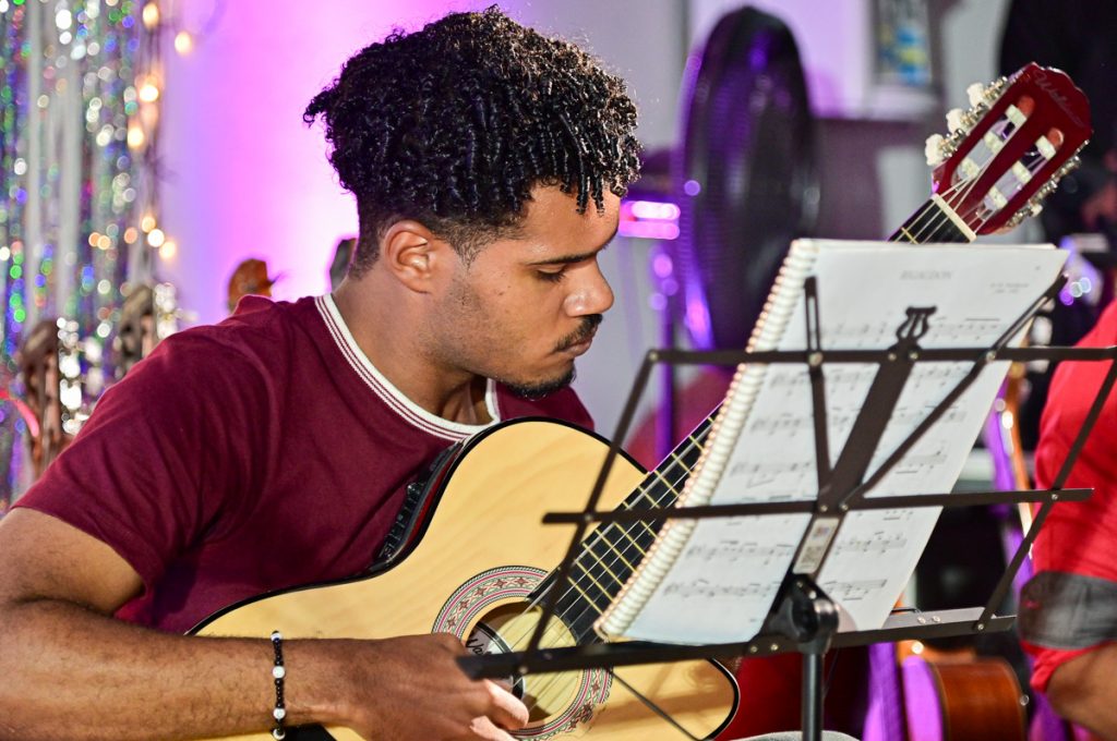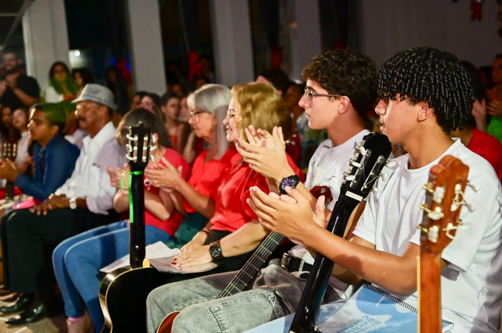 Carlione Teixeira, pai de um dos alunos, estava emocionado durante a apresentação. “Estou muito feliz e orgulhoso. É uma sensação ímpar estar aqui. Meu filho ama as aulas de violão e chega em casa ensinando a irmãzinha. É uma experiência enriquecedora para todos nós,” declarou o pai.