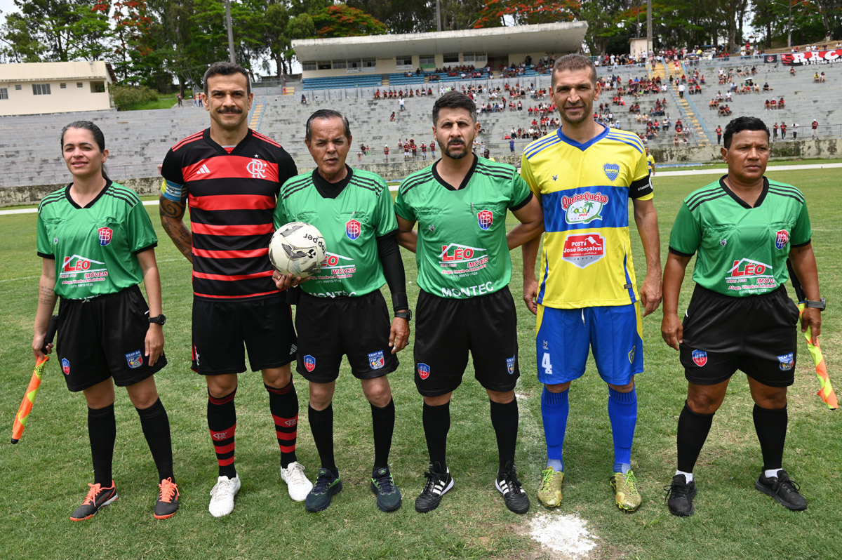 O Estádio Municipal Lomanto Júnior recebeu, na manhã deste domingo (7), um amistoso de futebol entre as seleções de masters do Vitória da Conquista e do Clube de Regatas do Flamengo do Rio de Janeiro. O evento festivo, organizado em parceria com a Prefeitura de Vitória da Conquista, também marcou a despedida do árbitro Silvio Monteiro, que teve uma carreira de 37 anos na arbitragem da Federação Baiana de Futebol.