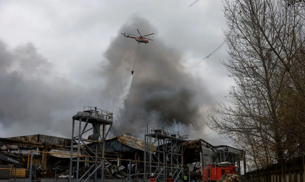 O ataque em Kiev provocou vários incêndios e danificou a infraestrutura residencial, incluindo um jardim de infância, de acordo com autoridades da cidade.