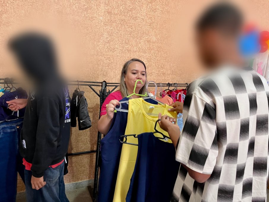 A adolescente T. P. N., de 15 anos, descreveu a sensação de poder escolher as roupas de acordo com seu estilo e personalidade. “Eu senti muita alegria, muito amor e carinho. A gente normalmente recebe roupas de doação e precisa pegar emprestado, mas eu não gosto e me sinto mal com isso. Hoje, eu comprei o que queria, foi bom poder escolher conforme meu estilo. Eu nunca fui a uma loja assim só para comprar alguma coisa”, contou a adolescente.