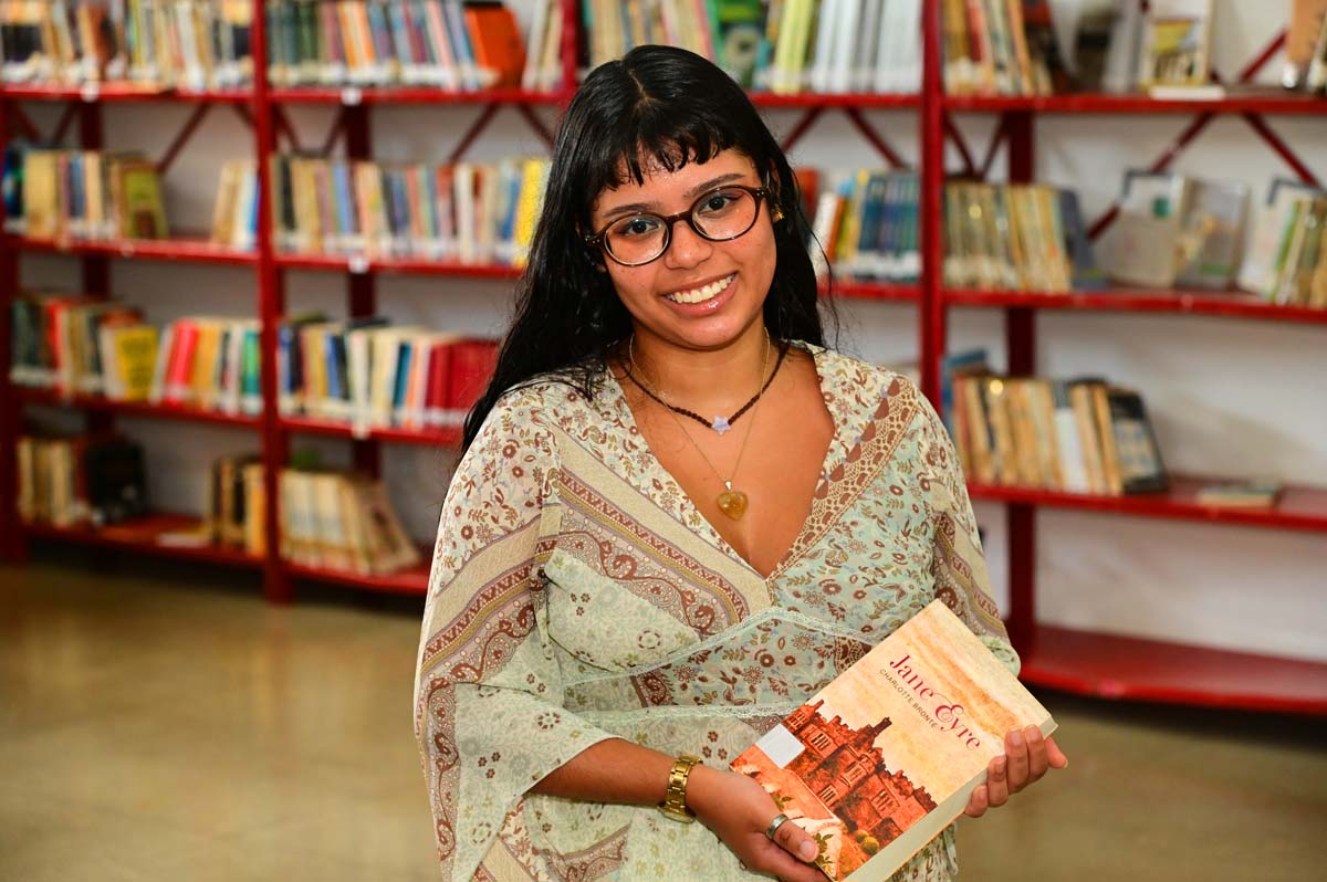 Desde 2024, Adriele Barbosa, universitária de Biomedicina, visita a Biblioteca Municipal semanalmente. “Eu comecei a ter o hábito de leitura com 12 anos, por conta dos meus pais que sempre me incentivaram. A maioria dos livros que eu li foi aqui da biblioteca. Ela tem um acervo muito grande, com livros para todos os gostos, sejam eles nacionais, internacionais, a gente conhece autores de várias regiões do mundo, a leitura nunca fica limitada”.