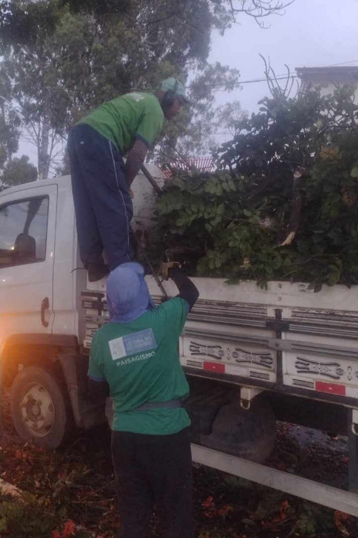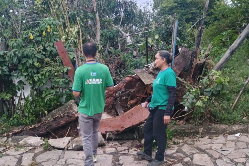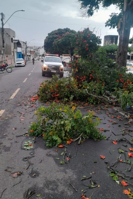 Galhos de uma árvore caíram na Praça da Saudade. A equipe do Simtrans desobstruiu a via e a equipe da Semma já retirou os galhos no fim da tarde.