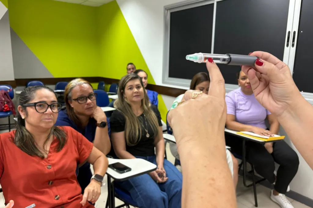 O objetivo é preparar os profissionais para orientar corretamente os pacientes quanto ao manuseio do novo dispositivo, que está sendo implementado pelo Ministério da Saúde em substituição às canetas descartáveis.