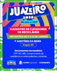 Prefeitura de Juazeiro abre cadastro para catadores de recicláveis que atuarão no Carnaval 2026