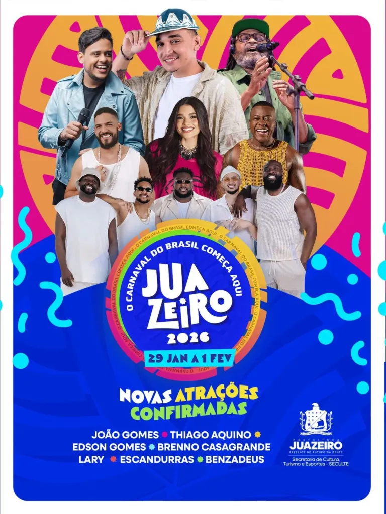 Prefeitura anuncia João Gomes, Edson Gomes e Thiago Aquino no Carnaval de Juazeiro 2026