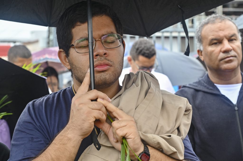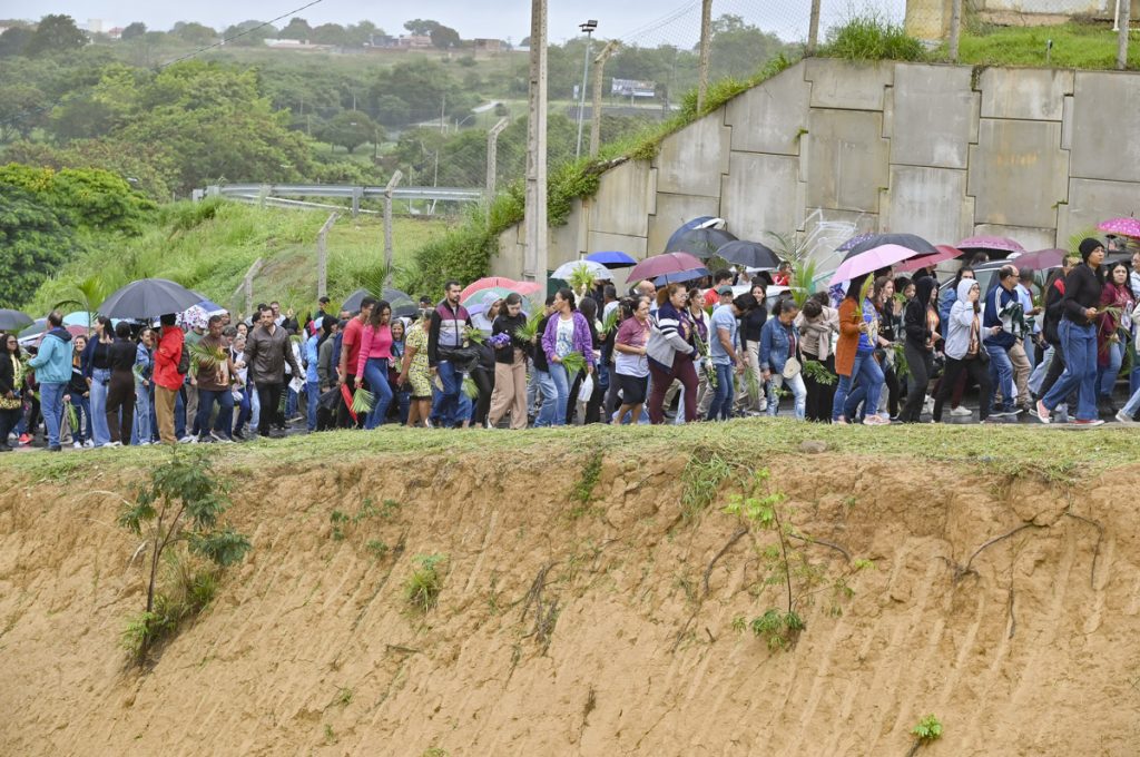 A estudante Alice Caiumi foi uma das fiéis que mesmo com as chuvas das primeiras horas da manhã de hoje esteve da celebração. Segundo ela, participar da procissão é uma tradição para os católicos. Acompanhada de familiares, ela falou sobre a alegria de participar do Domingo de Ramos, que antecede a data em que Jesus morreu por cada um de nós. “É muito importante para a gente relembrar os passos de Jesus”, concluiu.