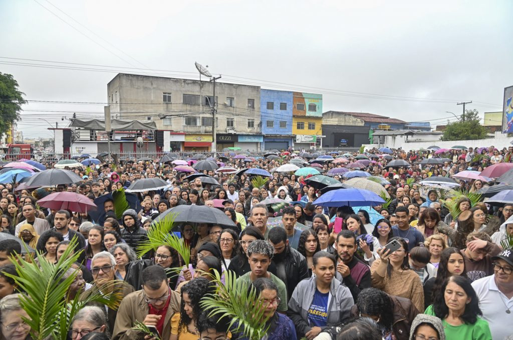 Na manhã deste domingo (29), a comunidade católica de Vitória da Conquista celebrou o Domingo de Ramos com uma grande mobilização que teve início na Lagoa das Bateias, com a bênção dos ramos, seguida de procissão pela Avenida Brumado até a Paróquia Nossa Senhora de Fátima, onde aconteceu a missa campal celebrada pelo arcebispo Dom Vitor Agnaldo Menezes. O evento, que contou com a presença de fiéis das 17 paróquias do município, marca o início da Semana Santa.