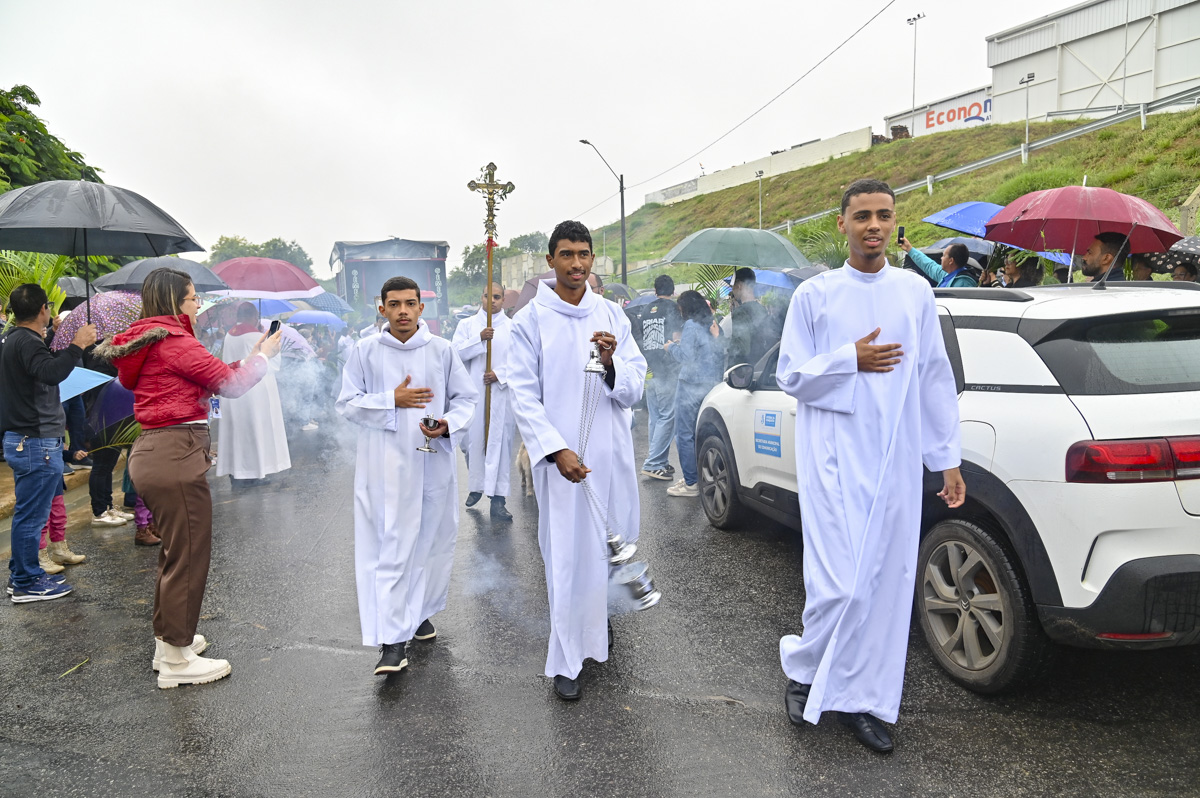 A estudante Alice Caiumi foi uma das fiéis que mesmo com as chuvas das primeiras horas da manhã de hoje esteve da celebração. Segundo ela, participar da procissão é uma tradição para os católicos. Acompanhada de familiares, ela falou sobre a alegria de participar do Domingo de Ramos, que antecede a data em que Jesus morreu por cada um de nós. “É muito importante para a gente relembrar os passos de Jesus”, concluiu.