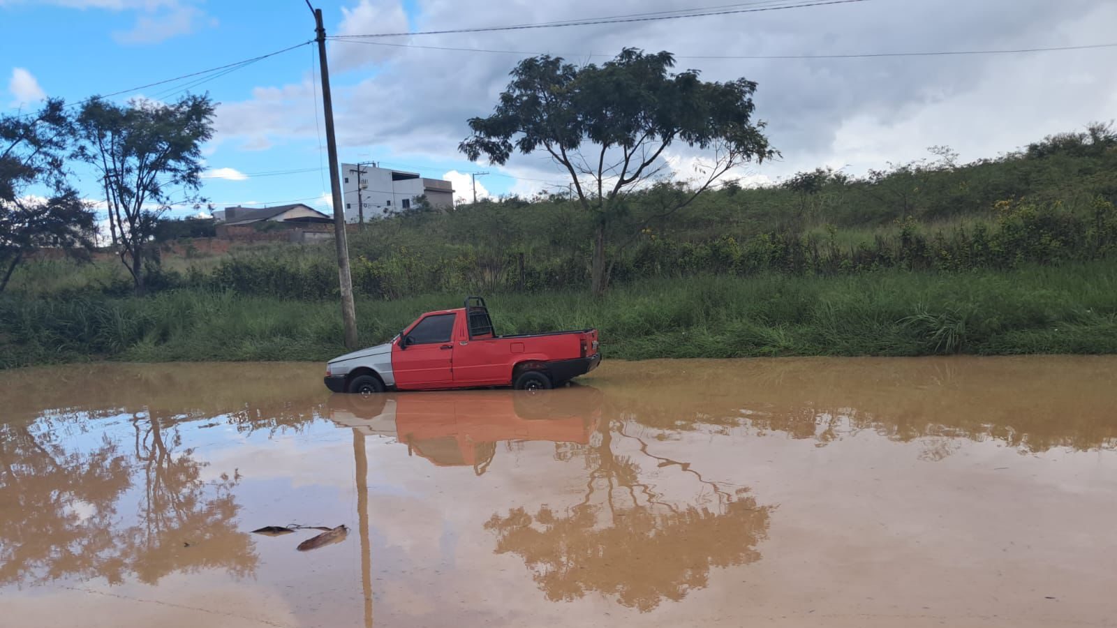 Na Zona Oeste da cidade, um trecho da Lagoa das Bateias (sentido loteamento Serrinha) está interditado, por conta do grande volume de água e terra que chegou ao local.
