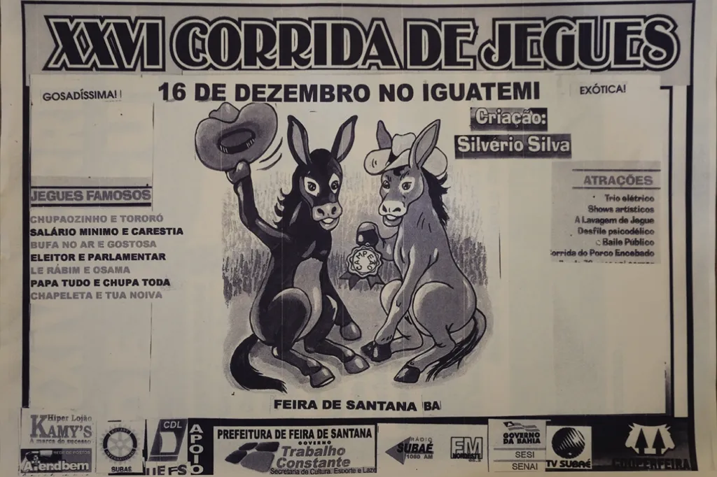 Que as enormes boiadas que por aqui passavam deram origem ao povoado, hoje a metropolitana cidade de Feira de Santana, todos sabem, está na história. Talvez por isso, durante quase quatro décadas, a Corrida de Jegues obteve enorme sucesso. Nomes curiosos e hilários, uma “jóquei” de 102 anos, casamento de animais, muitas atrações que foram idealizadas e realizadas pelo comunicador Silvério Silva marcaram para sempre o evento.