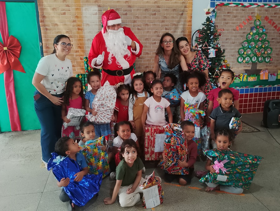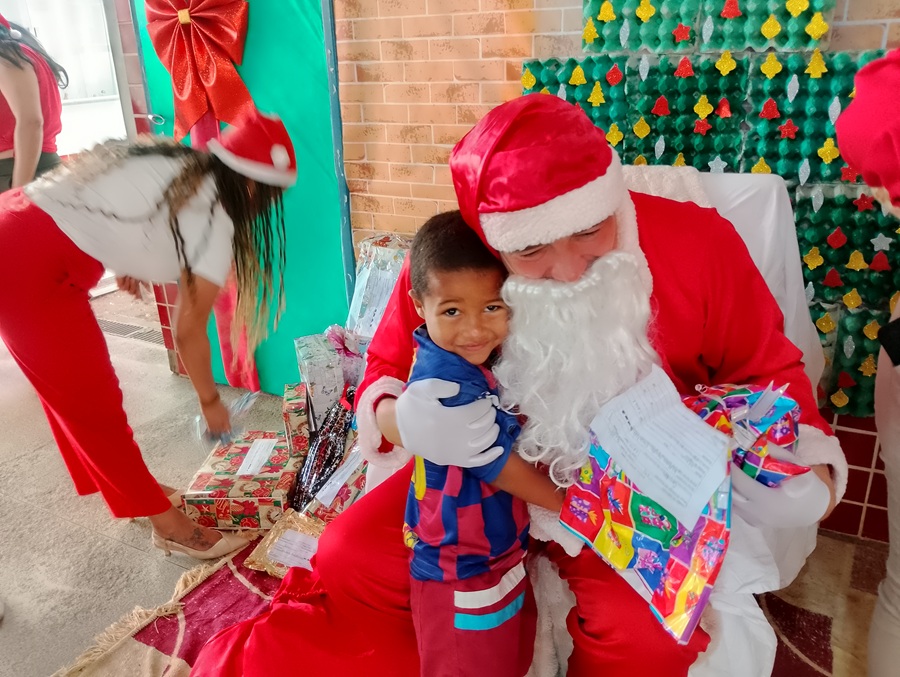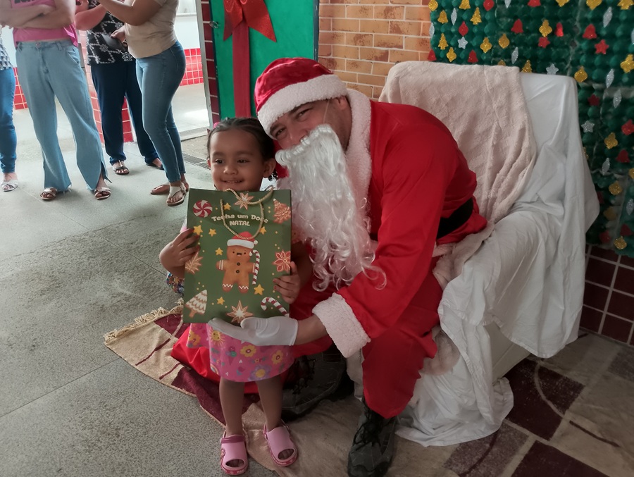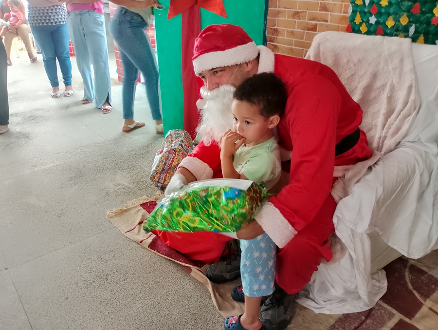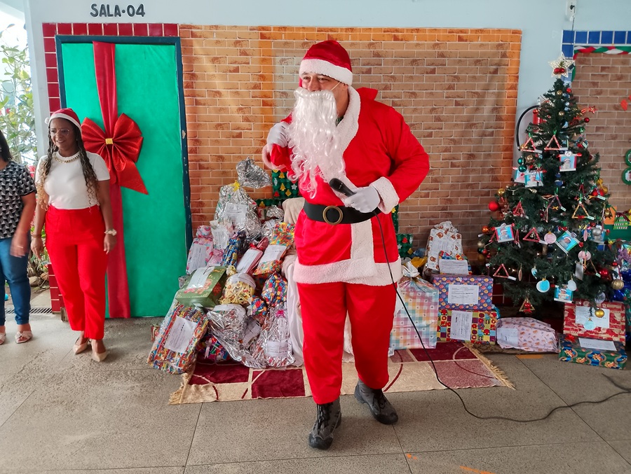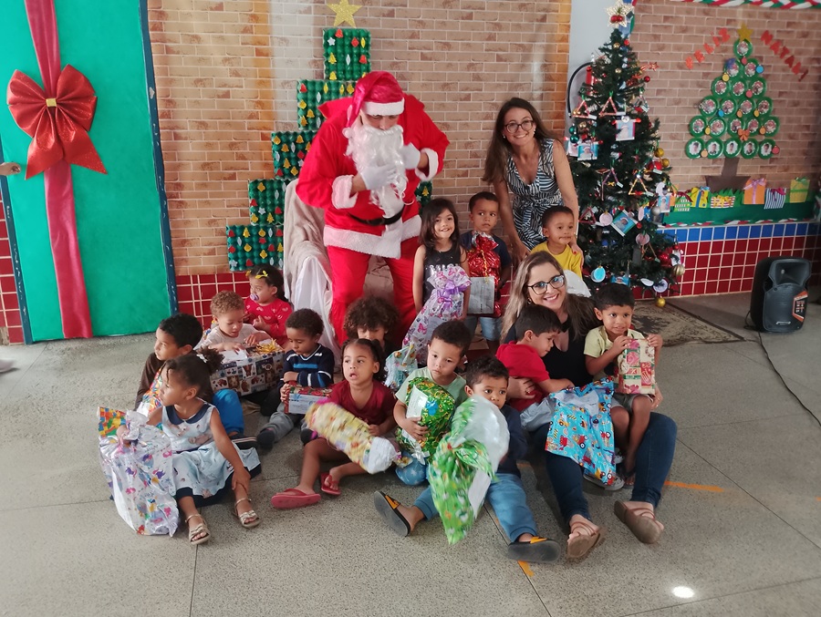 As crianças matriculadas no Centro Municipal de Educação Infantil (Cmei) Tio Allyson (antigo Vila América) receberam, nesta quarta-feira (10), os presentes que pediram, por carta, ao Papai Noel. É a campanha Papai Noel dos Correios, promovida pela Empresa Brasileira de Correios e Telégrafos (ECT), com o apoio da Prefeitura de Vitória da Conquista, por meio da Secretaria Municipal de Educação (Smed).