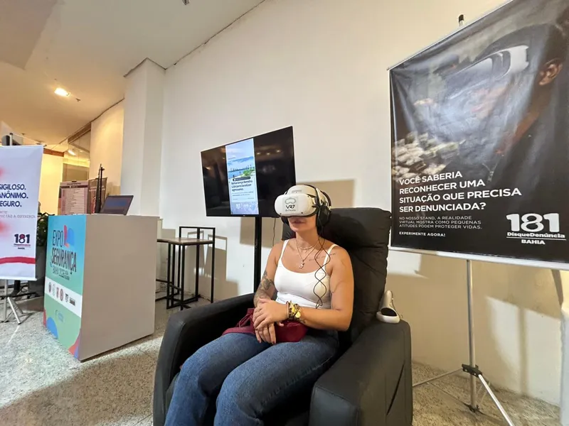 Baianos e turistas que visitarem o stand do Disque Denúncia 181 na Exposegurança 2026, a partir desta quinta-feira (29), no Shopping da Bahia, vão se deparar com uma cena de crime e aprender como auxiliar a Polícia. Isto por que as equipes da Secretaria da Segurança Pública apresentam as principais ações de combate ao crime por meio de um óculos de realidade virtual.