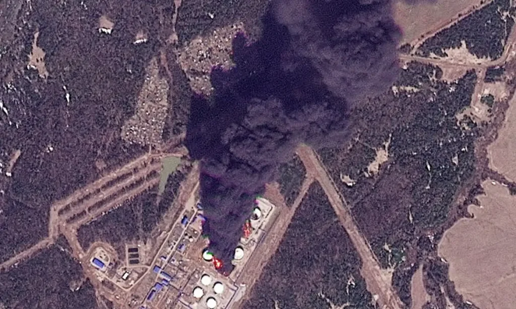 De acordo com informações preliminares, o ataque atingiu uma instalação importante para o processamento de petróleo primário na refinaria, efetivamente colocando a unidade fora de ação, segundo o SBU.