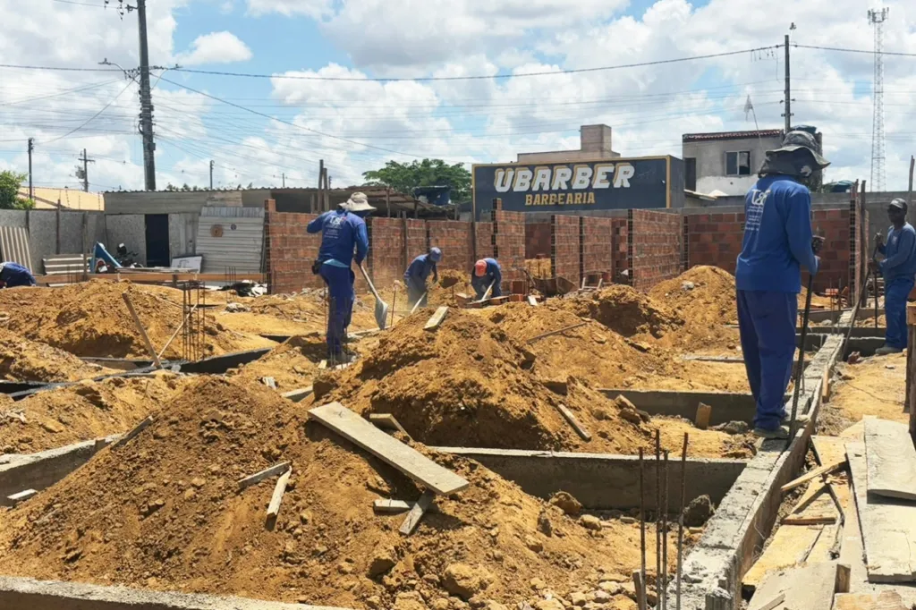 No canteiro de obras, a movimentação é intensa. Operários da empresa responsável, T&F Construções – vencedora da licitação pública – se dedicam aos trabalhos de fundação do terreno, enquanto outros já deram início aos serviços de alvenaria, com a elevação das primeiras estruturas de paredes.