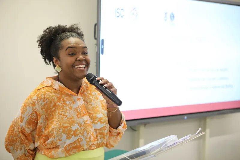 “Acho que esse é um momento de formação continuada, um momento de parar para tentar refletir em conjunto sobre esse tema. Apesar de não estar nos Distritos Sanitários, de não estar na ponta, eu acho que do lugar onde eu estou, eu consigo contribuir também fazendo reflexões e problematizando para que possamos construir uma discussão em conjunto”, afirmou Joilda, no início da apresentação.