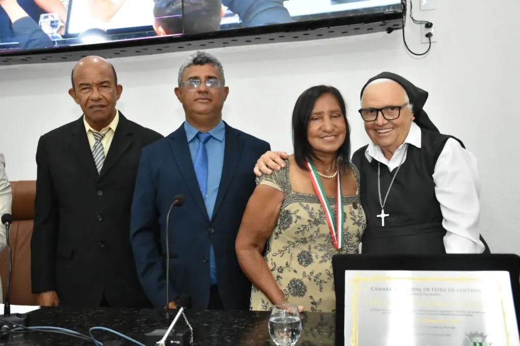 “Foi aqui em Feira de Santana que os caminhos dos dois se encontraram e que, juntos, decidiram dedicar suas vidas para ajudar ao próximo, especialmente às crianças carentes deste Município, abandonadas e sem apoio”. A fala é do vereador Lulinha da Gente (União Brasil), proponente de uma sessão solene realizada na tarde desta quarta-feira (18), que concedeu o Título de Cidadão Feirense a Carmerival Gonçalves Alves e condecorou com a Comenda Maria Quitéria, Zélia Maria Araújo Alves. Ambos são casados, espíritas e responsáveis pela Instituição Fraternal “Sorriso de Criança”.