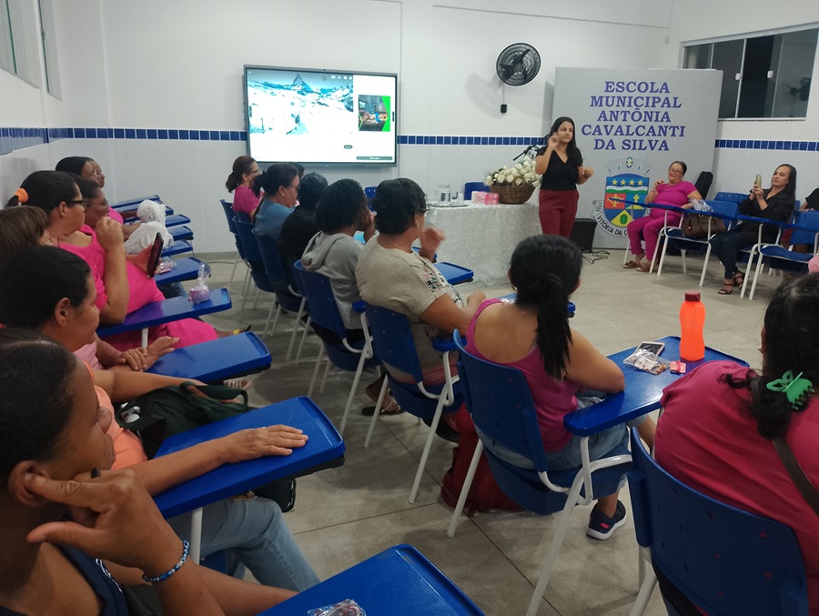 Acolhimento, valorização e incentivo ao autocuidado. Esses foram os objetivos da programação especial realizada pela Escola Municipal Antônia Cavalcanti da Silva na noite de ontem (10), em homenagem às alunas da modalidade Educação de Jovens e Adultos (EJA), em celebração ao Dia Internacional da Mulher.