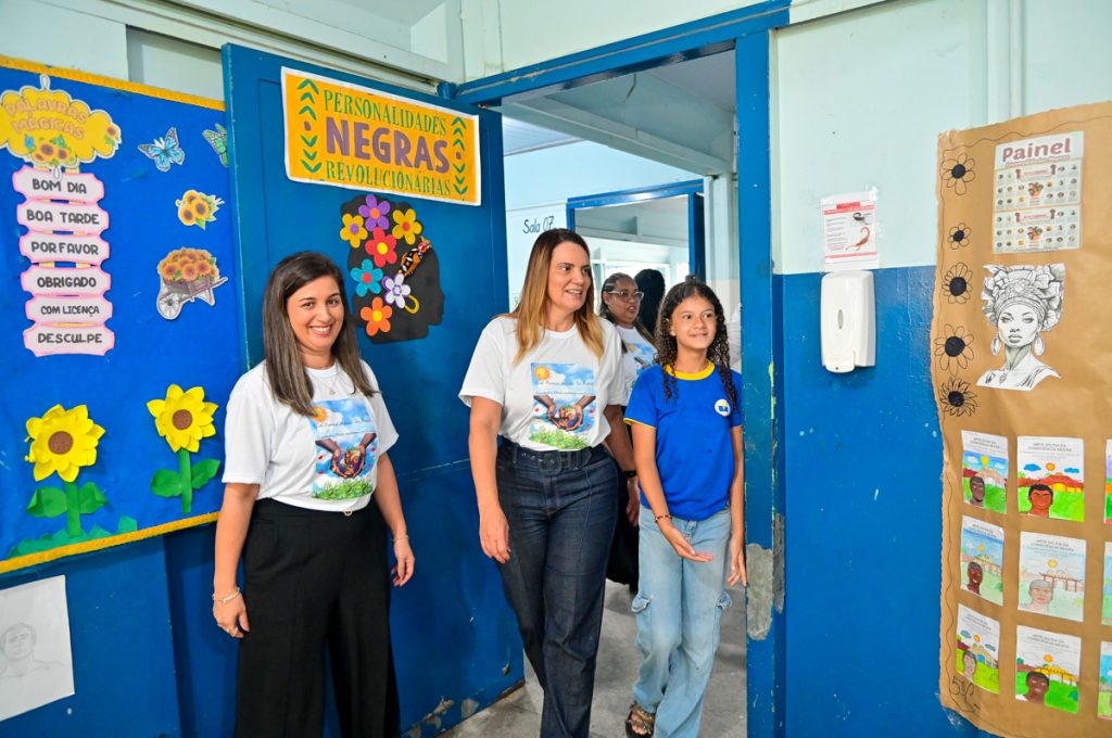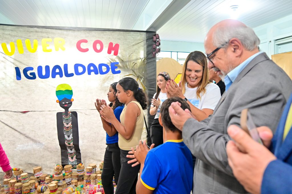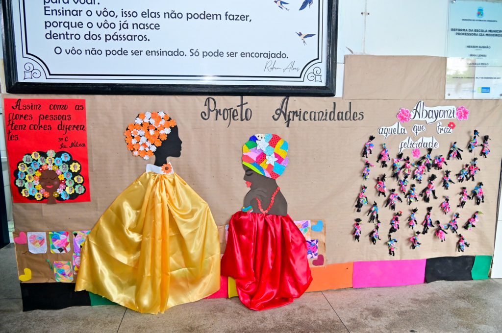 Ao final da cerimônia de premiação, a prefeita Sheila Lemos visitou as salas da escola que foram decoradas para o Projeto Africanidades, com elementos artísticos em homenagem a diferentes aspectos da cultura afro-brasileira.