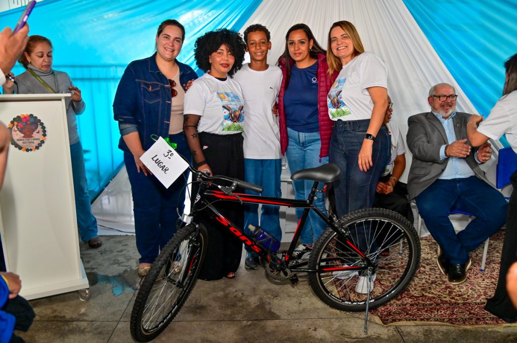 O primeiro lugar foi do estudante Davi Lucas, de 10 anos, com a expressiva marca de 215 obras lidas. Davi fez questão de afirmar que se dedicou muito para conseguir a premiação. “Eu gosto de ler, e me dediquei bastante pra ganhar a bicicleta. Ficar lendo e escrevendo redações não é uma tarefa muito fácil, mas a gente tem que ir pra cima, e quem chega até o final merece ganhar uma bicicleta”. Para Luana Aguiar, mãe de Davi, os benefícios da leitura são evidentes. “Ano passado ele não quis participar, mas esse ano a gente incentivou que ele participasse, porque não é somente o prêmio, mas o conhecimento que ele adquire pra ler melhor, escrever melhor, interpretar os textos. Ele se desenvolve não apenas em Português, mas em outras áreas também. Ele se dedicou, deixou de brincar muitas vezes pra ler, e isso mostra que no futuro ele pode se empenhar e alcançar o que quiser”.