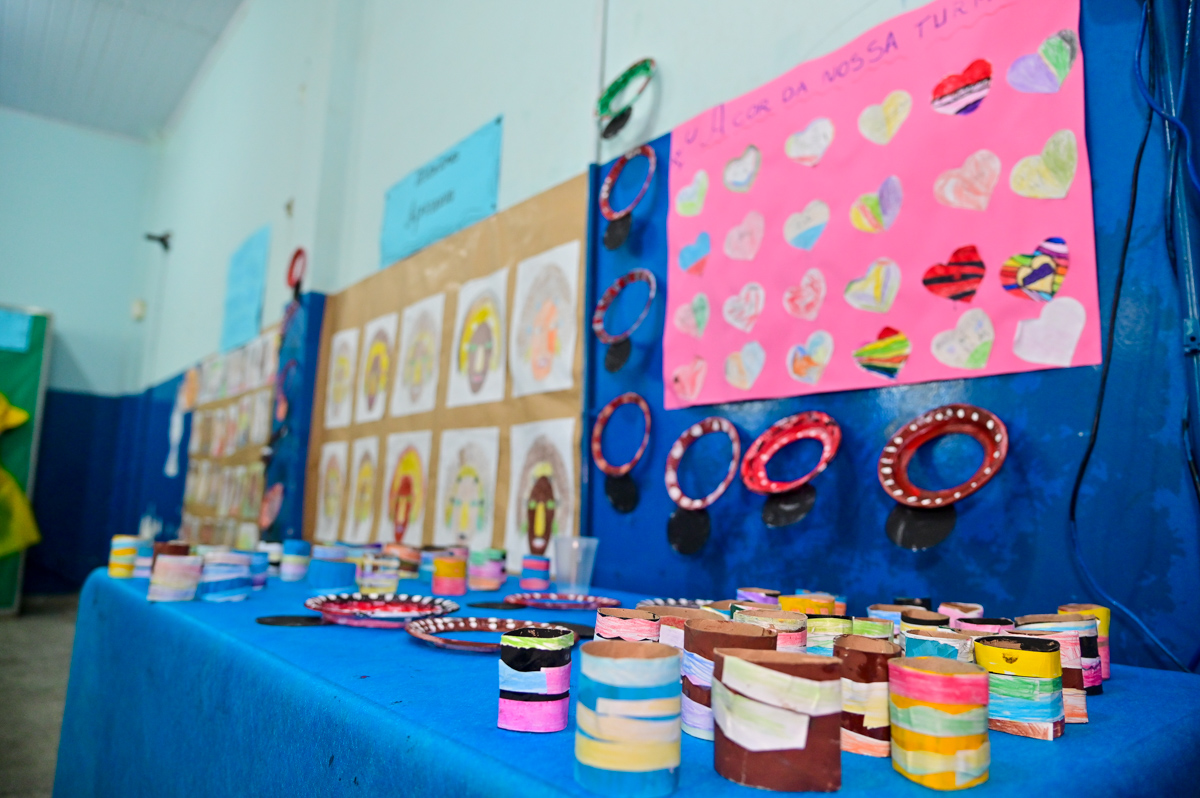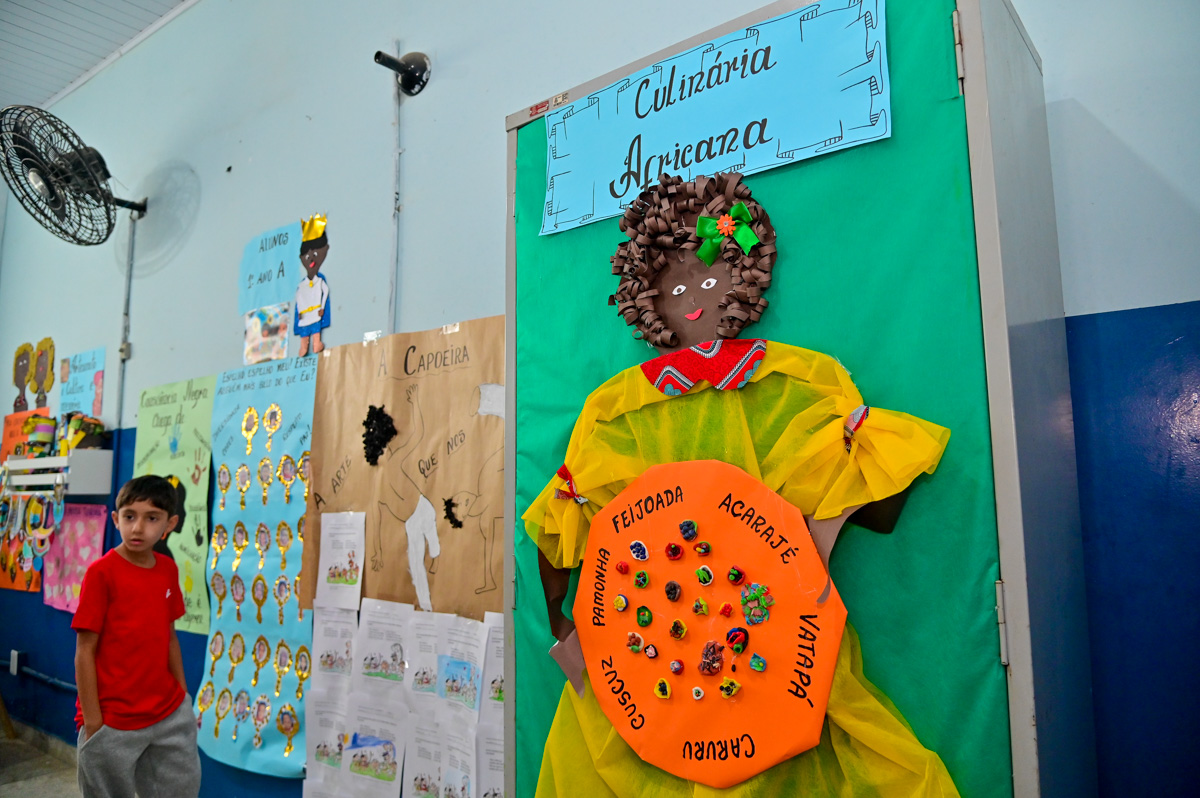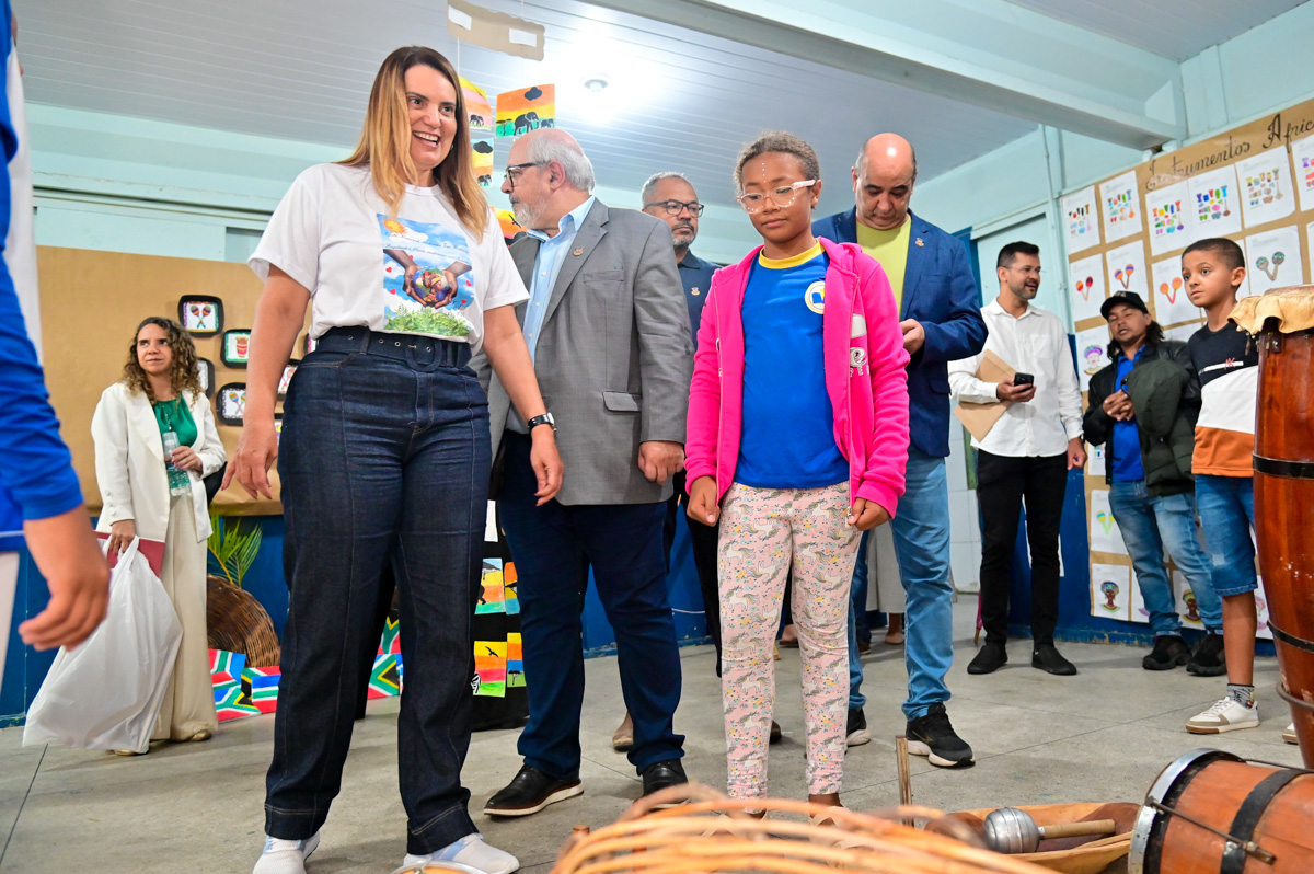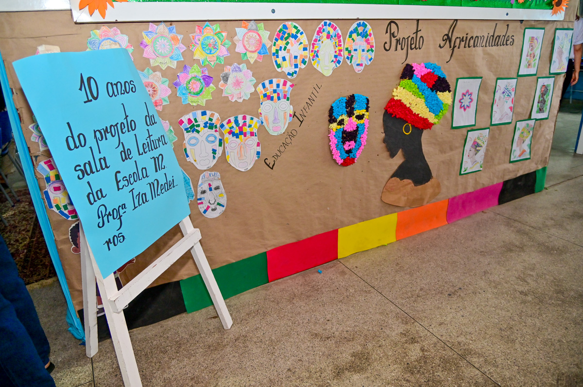 Ao final da cerimônia de premiação, a prefeita Sheila Lemos visitou as salas da escola que foram decoradas para o Projeto Africanidades, com elementos artísticos em homenagem a diferentes aspectos da cultura afro-brasileira.