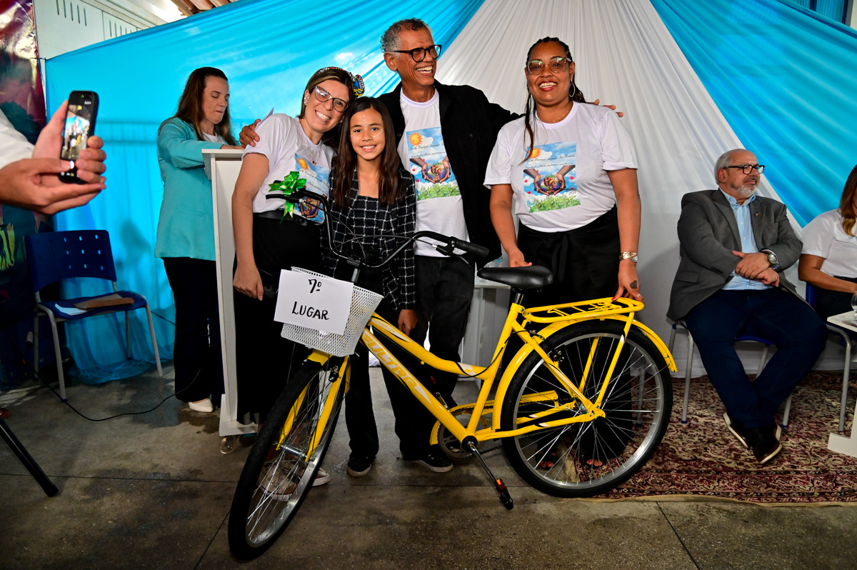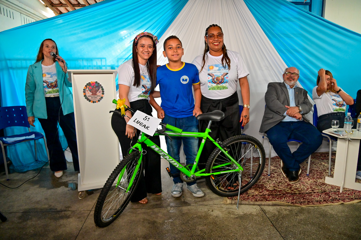O primeiro lugar foi do estudante Davi Lucas, de 10 anos, com a expressiva marca de 215 obras lidas. Davi fez questão de afirmar que se dedicou muito para conseguir a premiação. “Eu gosto de ler, e me dediquei bastante pra ganhar a bicicleta. Ficar lendo e escrevendo redações não é uma tarefa muito fácil, mas a gente tem que ir pra cima, e quem chega até o final merece ganhar uma bicicleta”. Para Luana Aguiar, mãe de Davi, os benefícios da leitura são evidentes. “Ano passado ele não quis participar, mas esse ano a gente incentivou que ele participasse, porque não é somente o prêmio, mas o conhecimento que ele adquire pra ler melhor, escrever melhor, interpretar os textos. Ele se desenvolve não apenas em Português, mas em outras áreas também. Ele se dedicou, deixou de brincar muitas vezes pra ler, e isso mostra que no futuro ele pode se empenhar e alcançar o que quiser”.