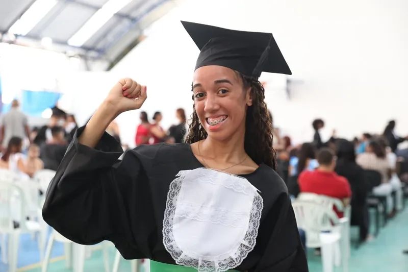 Com o objetivo de celebrar a finalização da Educação Básica, as escolas da rede estadual de ensino, da capital e interior, realizaram, nessa sexta-feira (19), a formatura dos concluintes do Ensino Médio Regular e Tempo Integral. Este ano, a rede estadual contou com 102.608 concluintes em todas as unidades escolares dos 417 municípios. As solenidades, que contaram com a participação de familiares e convidados, representam um marco significativo na trajetória dos estudantes e o primeiro passo para o ingresso no Ensino Superior.