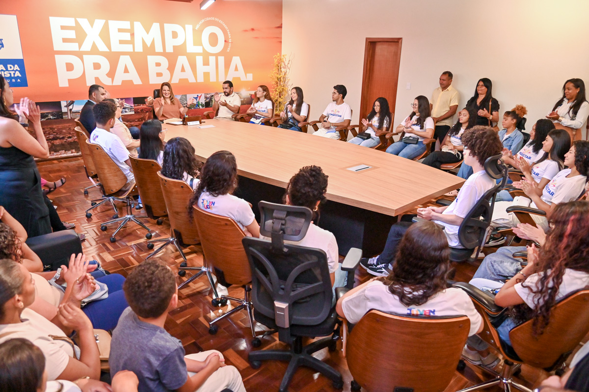 Na manhã desta quarta-feira (11), 20 estudantes do Projeto Conquistar que foram aprovados em diferentes processos seletivos de ingresso no Ensino Superior visitaram o Palácio da Joia do Sertão Baiano, sede do Governo Municipal, acompanhados dos pais. Os estudantes compartilharam a alegria das aprovações e agradeceram à Administração Municipal pelo apoio que transformou suas vidas.