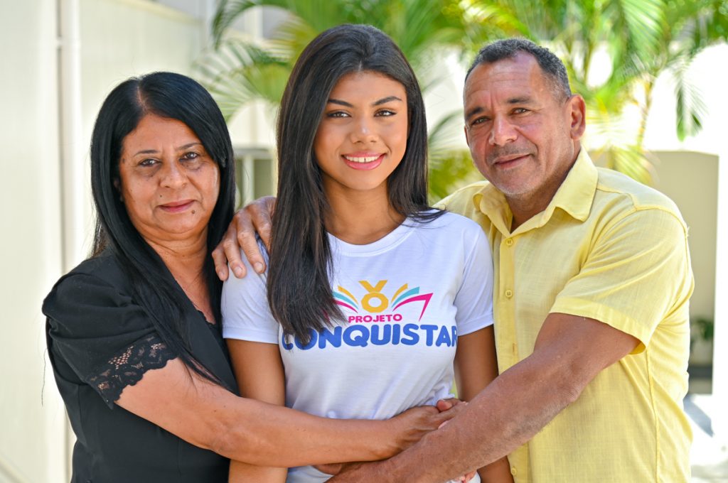 A jovem Victoria Oliveira, de 18 anos, é moradora do distrito de José Gonçalves, na zona rural, e conseguiu uma bolsa integral para cursar administração numa universidade particular. “Ficamos muito felizes pela confiança que vocês tiveram com a gente. Nós alunos da zona rural nem sempre temos acesso às mesmas oportunidades, por conta da distância. Mas a insistência do Luiz, tudo que o Conquistar nos ofereceu, abriu inúmeras oportunidades. Fiquei muito feliz quando abri o site e consegui a bolsa 100%. Só tenho a agradecer”.