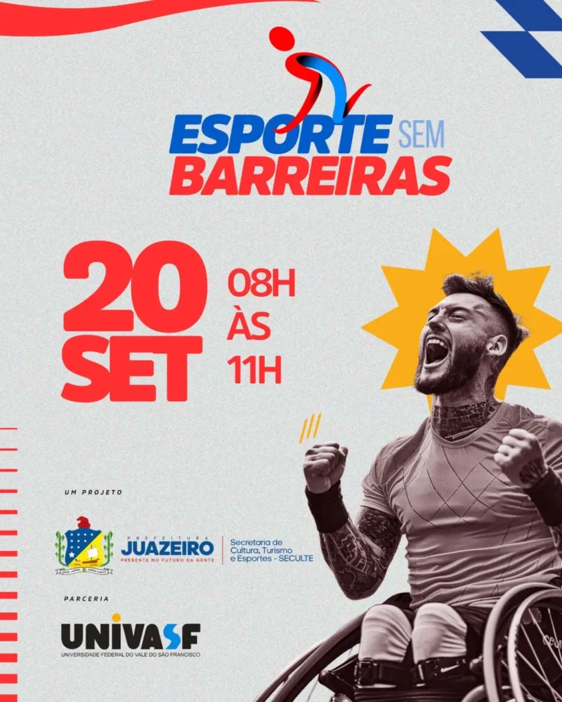 Juazeiro sedia neste sábado (20), véspera do Dia Nacional de Luta da Pessoa com Deficiência, um evento inédito voltado à promoção do esporte inclusivo no Vale do São Francisco. O projeto “Esporte sem Barreiras”, realizado pela Prefeitura, busca aproximar a população das modalidades paralímpicas e incentivar debates sobre capacitismo, acessibilidade e inclusão no esporte. A programação acontece das 8h às 11h, no complexo multiesportivo da Universidade Federal do Vale do São Francisco (Univasf), campus Juazeiro.