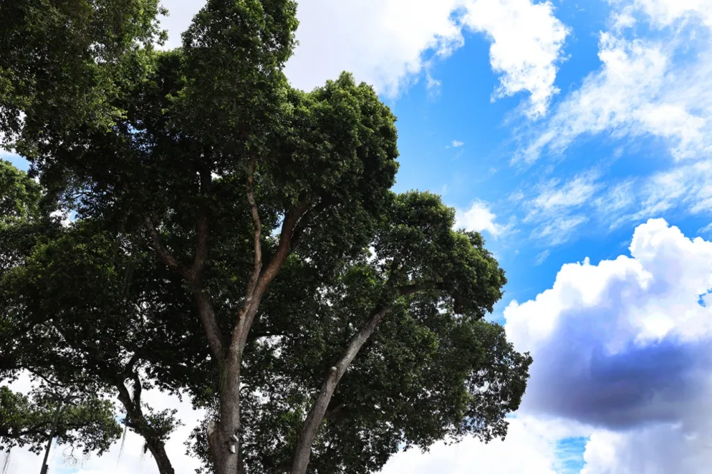 O domingo terá sol com algumas nuvens e chuva passageira durante o dia – com chance de 73%, com volume de cinco milímetros. À noite o tempo fica firme.
