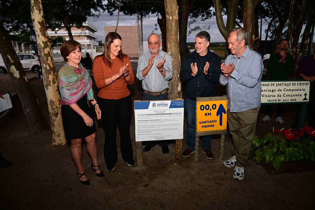 Durante a cerimônia, também foi inaugurada a placa da Lei nº 3.115/2026, que reconhece o Caminho de Santiago do Piripiri como patrimônio cultural e imaterial de Vitória da Conquista.