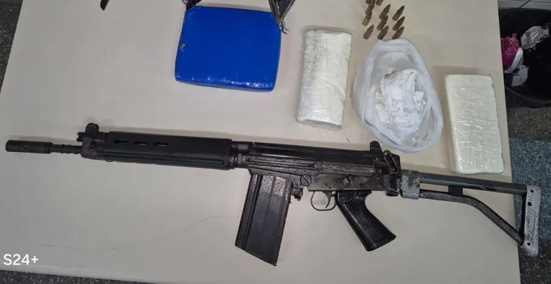 Guarnições do Batalhão de Polícia Rodoviária (BPRv) apreenderam um fuzil, um carregador, munições e mais de 3kg de drogas, na tarde de quinta-feira (21), na BA-530, em Camaçari.