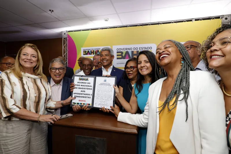 O Governo do Estado assinou, na manhã desta quinta-feira (18), o acordo que define as regras para o pagamento do piso salarial para aposentados, pensionistas, e ativos da Rede Estadual da Educação, licenciados e não licenciados, que não recebem o vencimento ou subsídio equivalente ao Piso Nacional do Magistério. A Ação é fruto de mediação, após decisão judicial, com o Sindicato dos Trabalhadores em Educação da Bahia (APLB), com o apoio da Procuradoria Geral do Estado (PGE).