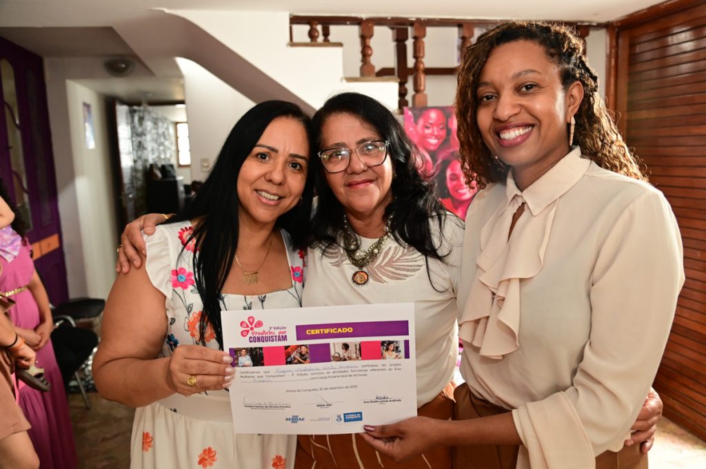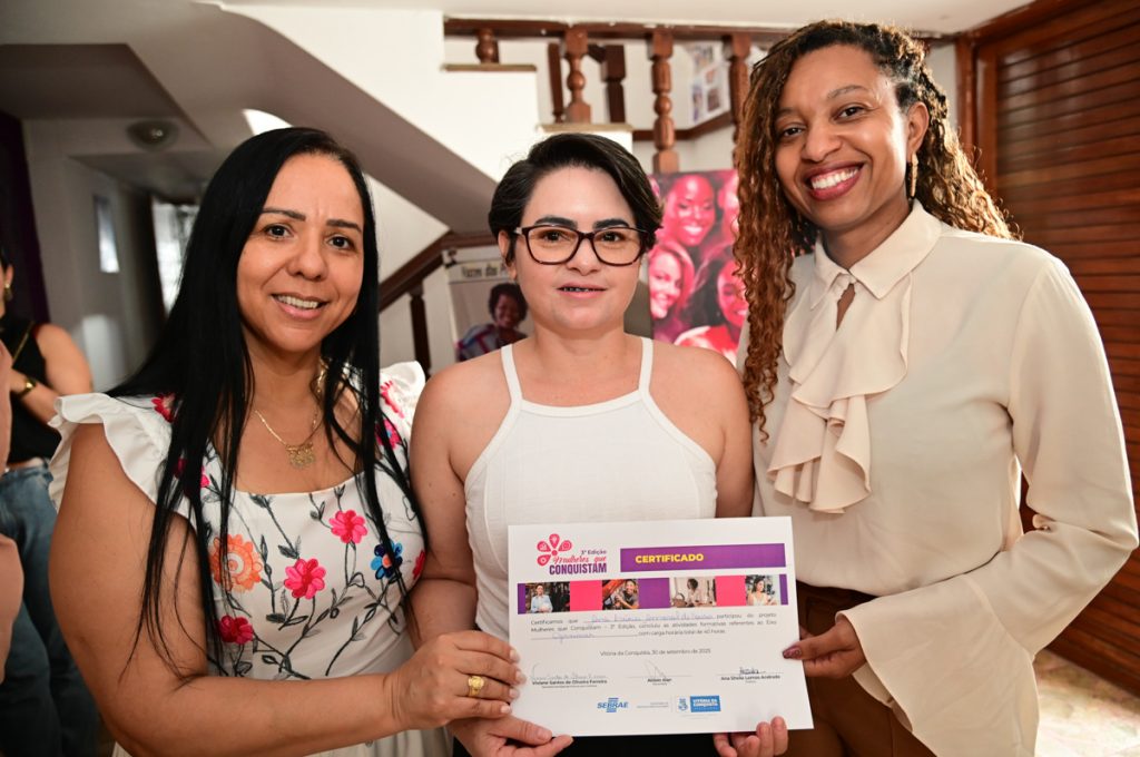 Na tarde desta terça-feira (9), a Prefeitura de Vitória da Conquista, por meio da Secretaria Municipal de Políticas para Mulheres (SMPM), certificou 45 participantes dos cursos “Mulheres que Conquistam” e “Filhas de Dandara”. A programação contou ainda com consultorias individuais e exposição de produtos e serviços.