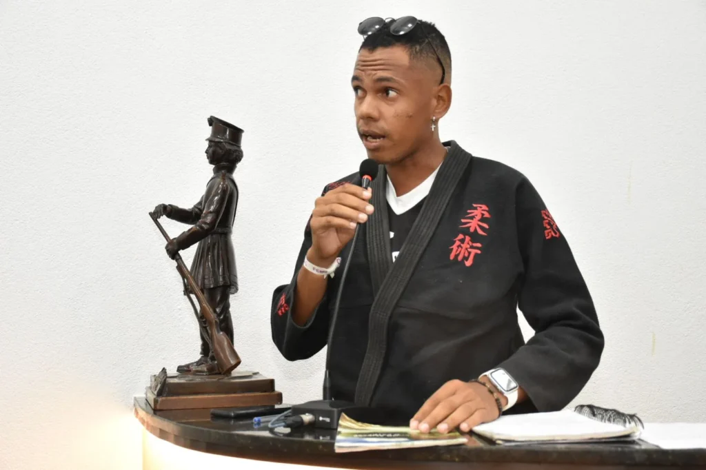 Utilizando a arte marcial como ferramenta de transformação social e meio de promover a cidadania, o Instituto Social de Karatê nas Comunidades está precisando do apoio do poder público e do setor empresarial para continuar desenvolvendo suas atividades. O pedido de ajuda foi feito hoje (16) pelo presidente da entidade, Rafael Ribeiro de Santana, durante pronunciamento na Tribuna Livre da Câmara. Instrutor de karatê, faixa preta, ele informou que, há dois anos, trabalha com aproximadamente 150 crianças e adolescentes feirenses, levando disciplina, respeito e conceitos de cidadania.