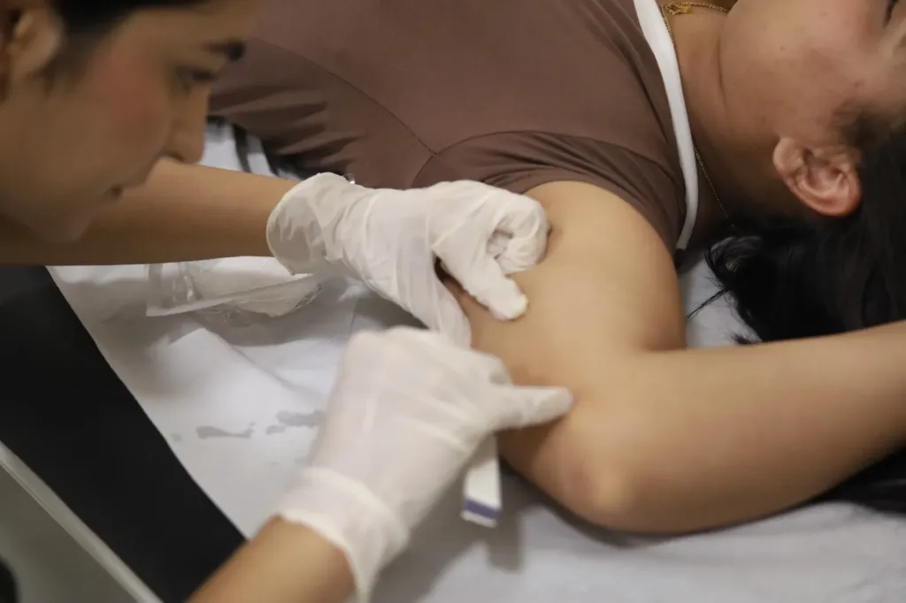 O médico de família e comunidade Lucas Monteiro destacou a relevância da iniciativa. “Estou aqui realizando a capacitação do Implanon, um novo método que agora chega ao SUS. É o método anticoncepcional mais eficaz que temos atualmente, com 99,95% de chance de contracepção. Trata-se de uma proteção por três anos, utilizando um único hormônio. É um método rápido, fácil de colocar e de remover, sendo que a paciente pode retirá-lo quando desejar. Existe um período de adaptação, geralmente nos primeiros três meses, em que pode ocorrer irregularidade menstrual, mas é um método com poucos efeitos colaterais. O mais importante é o aconselhamento, que está sendo trabalhado tanto com médicos quanto com a equipe de enfermagem”, explicou.