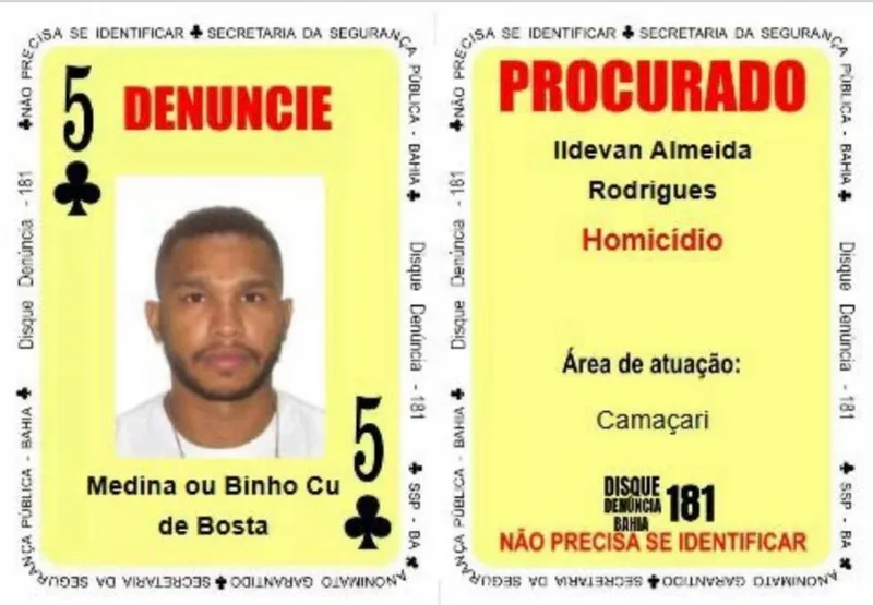 Uma ação conjunta entre a Polícia Civil da Bahia, a Força Integrada de Combate ao Crime Organizado e a Polícia Militar de São Paulo prendeu, na noite de sábado (21), Ildevan Almeida Rodrigues, de 31 anos, o “5 de Paus” do Baralho do Crime da Secretaria da Segurança Pública da Bahia (SSP/BA). Ele foi localizado no bairro Parque São Lucas, na zona leste do município de São Paulo.