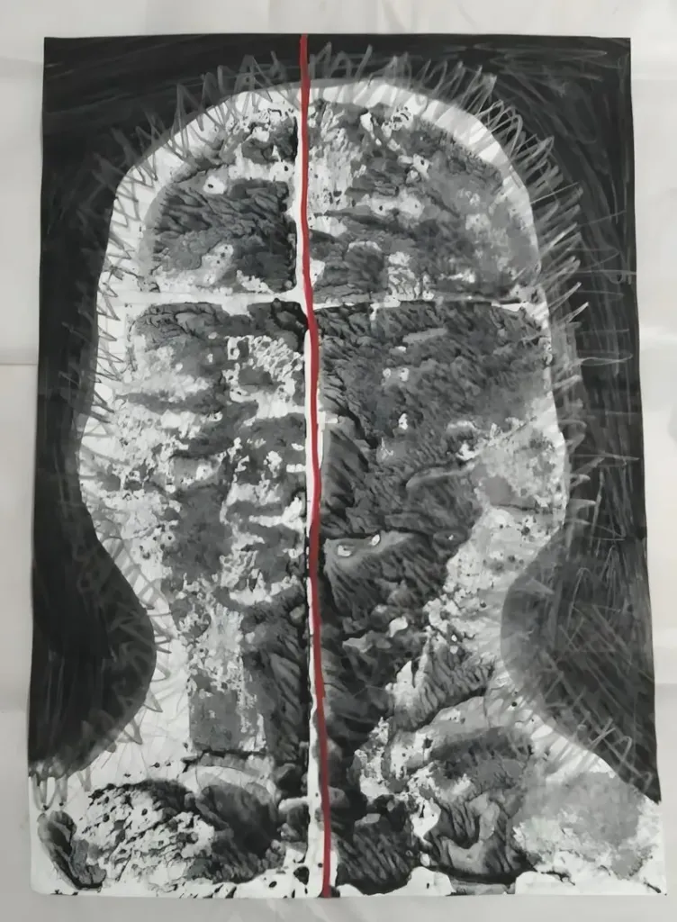 A mostra reúne apenas duas obras e uma das canções que o artista entoa em seus rituais criativos. Hálito e Fumaça transforma o espaço expositivo em um território de transmutação, onde corpo, palavra e pintura se entrelaçam num rito de passagem entre o visível e o invisível, entre ancestralidade e contemporaneidade.
