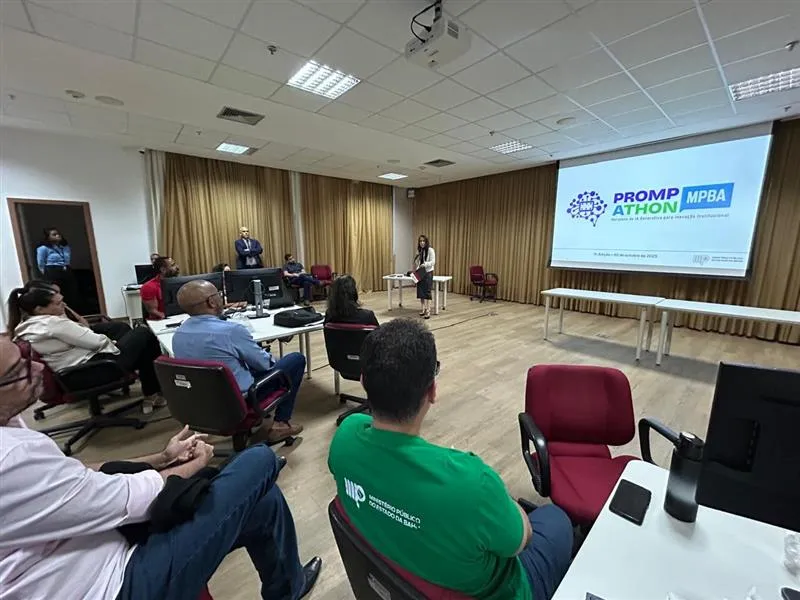 O Ministério Público do Estado da Bahia, por meio da Diretoria de Tecnologia da Informação (DTI), promoveu ontem, dia 2, na sede da instituição no CAB, a primeira edição do ‘Prompathon’, uma maratona de inteligência artificial generativa voltada para a inovação institucional. O evento, que contou com o apoio do Centro de Estudos e Aperfeiçoamento Funcional (Ceaf), foi realizado por representantes da Microsoft e reuniu 43 integrantes do MPBA, distribuídos em oito equipes.