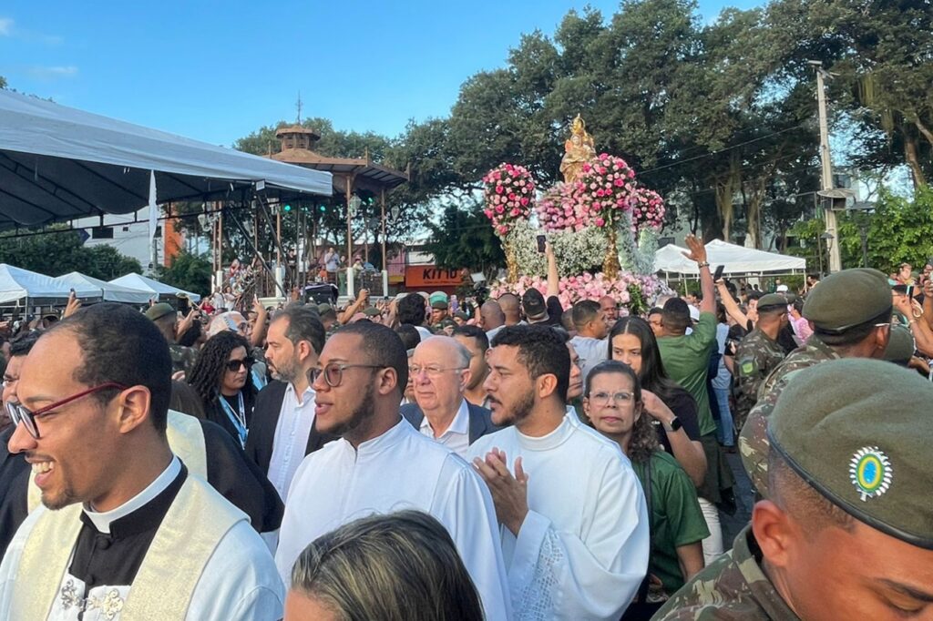 Com orações, cantos e profunda devoção, a comunidade católica de Feira de Santana tomou as ruas do Centro da cidade na tarde deste sábado (26), durante a tradicional procissão em homenagem à padroeira do município, Senhora Sant’Ana. O cortejo religioso é um dos pontos altos da festa dedicada à santa, símbolo de fé para milhares de fiéis.