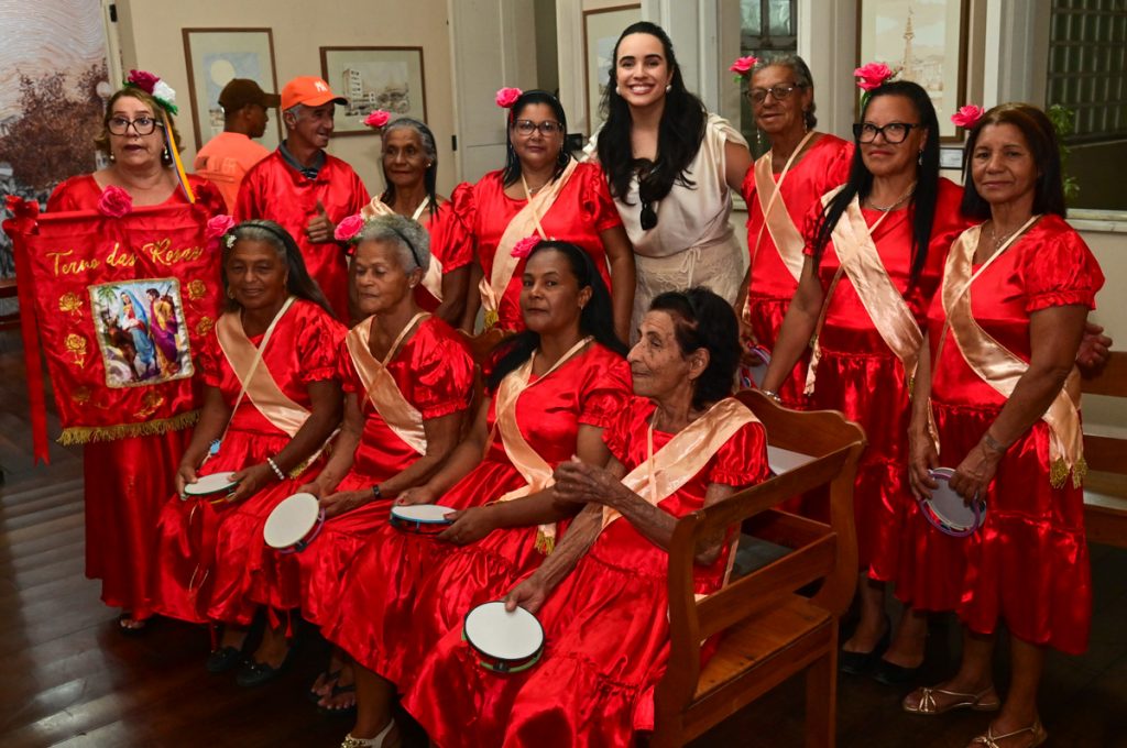 Com um vigor contagiante, a mestre relatou a retomada da tradição em 2008 e detalhou o ritual das cantorias: “A gente canta o rei na porta; quando abre, cantamos lá dentro. Se tiver presépio, tem música específica. E depois vem o samba, a gente dança e se diverte. Resolvi aproveitar nossa beleza e colocar o grupo na rua”, contou, emocionada.