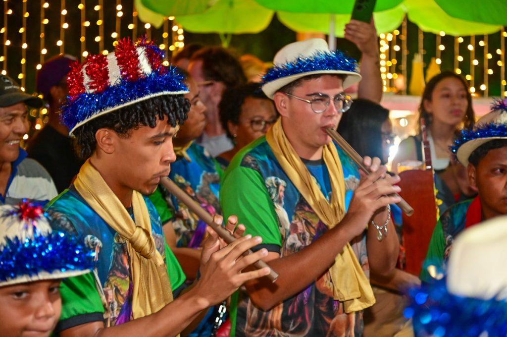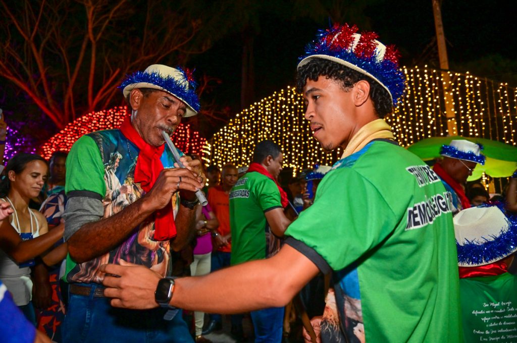 Um dos momentos mais simbólicos da noite foi a apresentação do Terno de Reis Memória Resgatada. Liderado pelos jovens mestres Pedro Antônio e Ramon Dias Silva Dias, o grupo é fruto de um esforço de três anos para não deixar morrer uma tradição que corria o risco de desaparecer após o falecimento de antigos mestres.