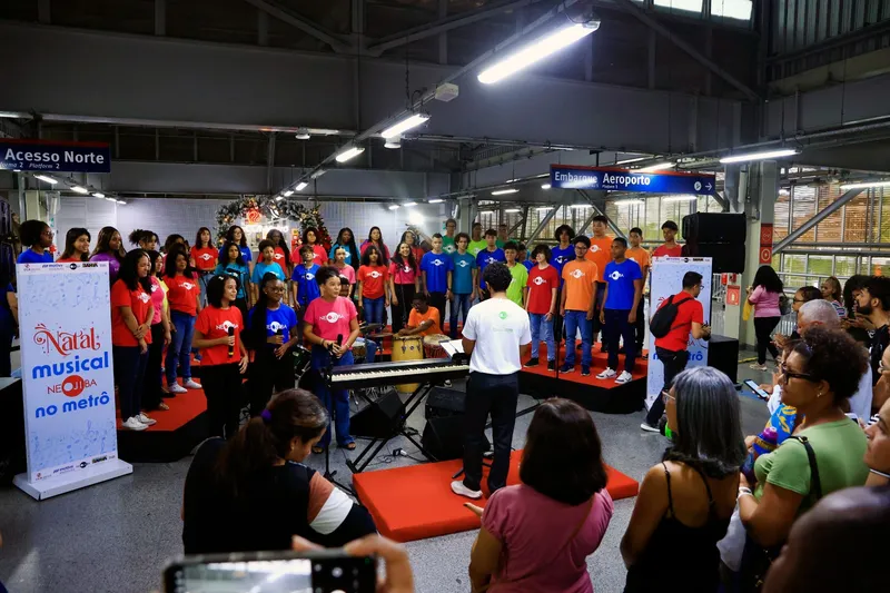 Nesta segunda-feira (15), quem passou pela Estação Rodoviária do Metrô, em Salvador, foi surpreendido por uma apresentação especial do Coro Infantojuvenil dos Núcleos Estaduais de Orquestras Infantis e Juvenis da Bahia (Neojiba), formado por 50 cantores na faixa etária de 13 a 20 anos. O repertório, composto por 15 canções de compositores baianos e natalinas, celebra a chegada do fim de ano.