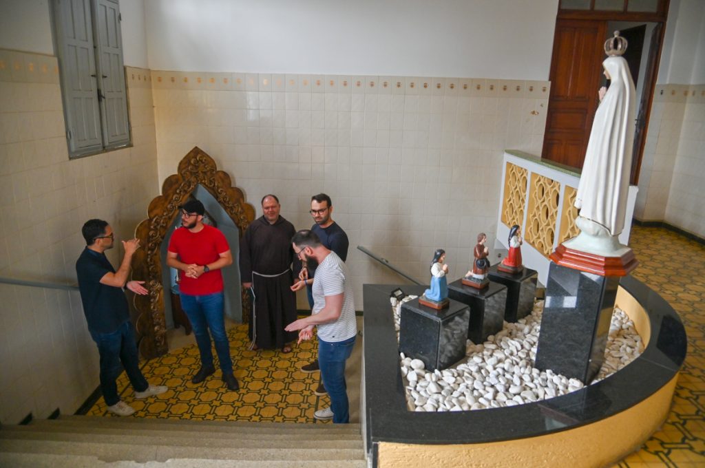 Na reunião, o pároco manifestou entusiasmo com a iniciativa e autorizou o acompanhamento do Núcleo de Preservação ao processo de restauração da igreja. Frei Gleizer destacou o simbolismo arquitetônico do templo: “A nossa igreja aqui do seminário tem o formato octogonal. O frei Benjamim se inspirou nos primeiros batistérios do início do cristianismo, capelas onde as pessoas eram batizadas, e trouxe essa tradição milenar para Vitória da Conquista. Isso reafirma a continuidade da nossa fé cristã e a ligação com a memória litúrgica da Igreja.”