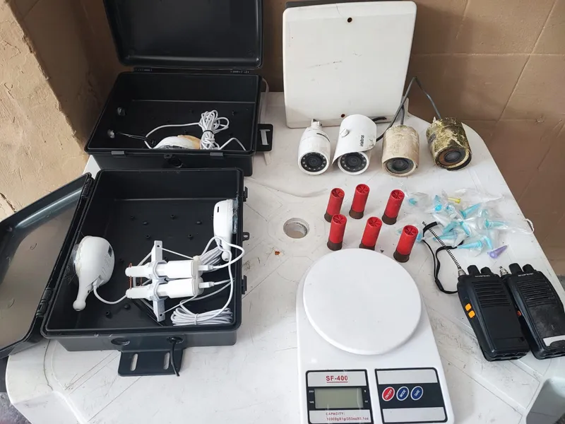 Os militares realizavam rondas na Rua Ana Ariane, quando foram informados pelo Cicom, que estaria ocorrendo disparos de arma de fogo no local. Ao chegarem, um grupo de indivíduos fugiu em direção a uma mata. Foram localizados sete camêras de monitoramento, uma balança de precisão, seis munições calibre 12, dois rádios comunicadores e 42 pinos de cocaína.